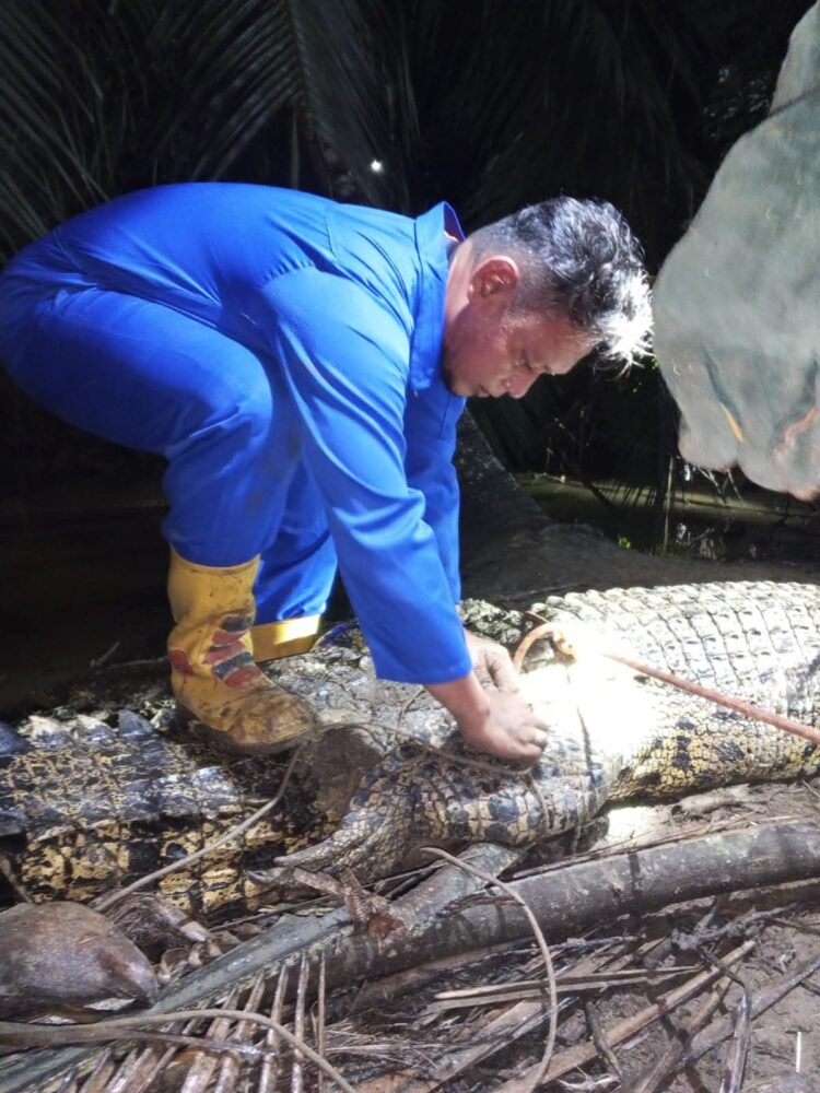 “Kita evakuasi dengan hati-hati menggunakan simpul jerat. Warga juga membantu memantau gerak-gerik buaya agar tidak menyerang,” imbuh Aristra. Setelah beberapa menit, buaya berhasil ditangkap dengan selamat.