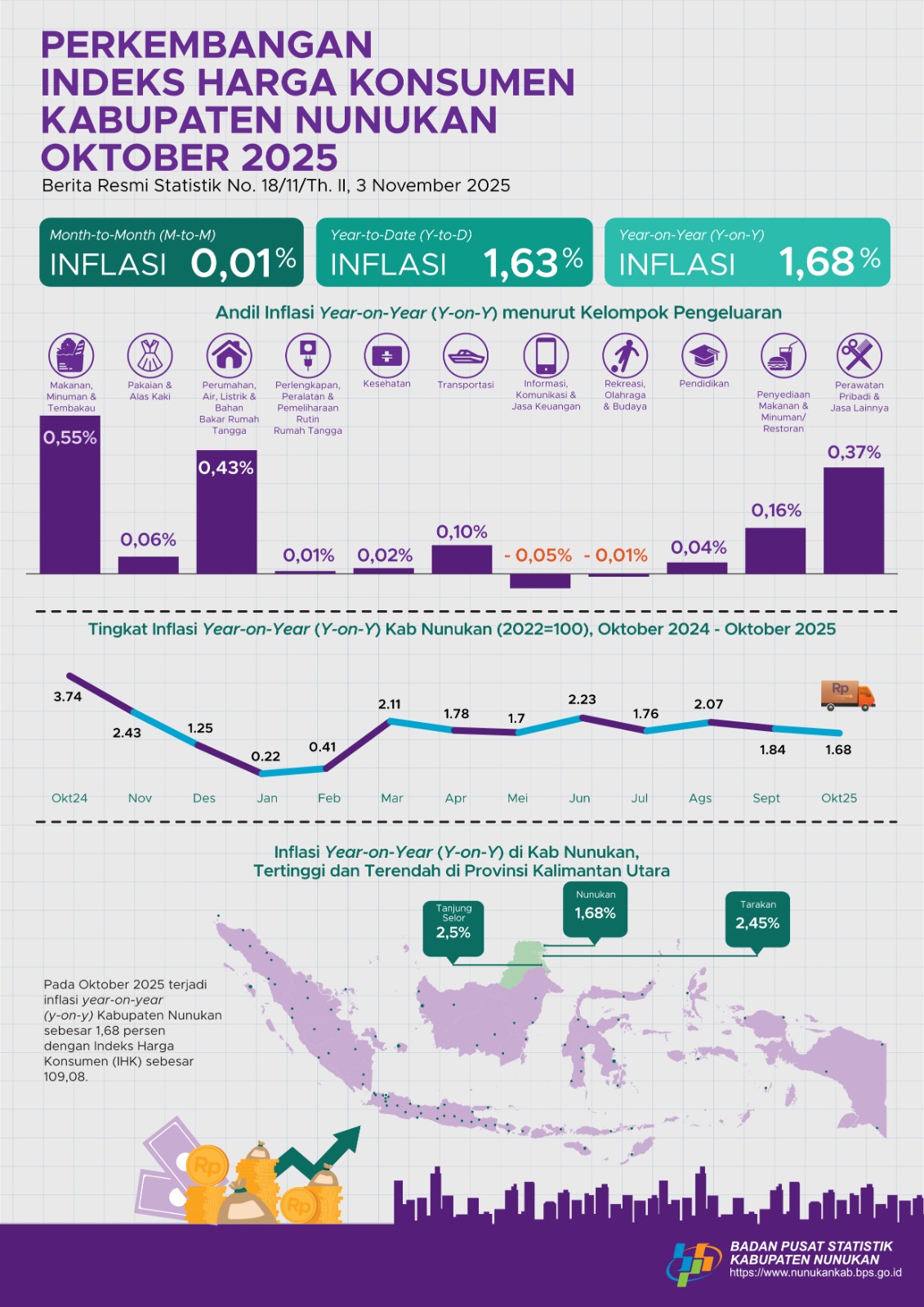 SB, NUNUKAN – Badan Pusat Statistik (BPS) Kabupaten Nunukan mencatat kabar baik bagi warga. Inflasi year-to-date hingga Oktober 2025 hanya sebesar 1,63 persen.