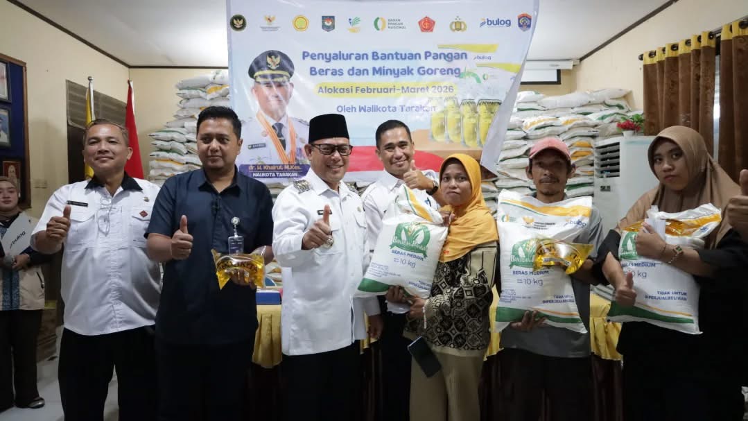 TARAKAN – Wakil Wali Kota Tarakan, Ibnu Saud Is, secara simbolis menyerahkan bantuan pangan berupa beras dan minyak goreng untuk alokasi Februari dan Maret, Rabu (1/4/2026).