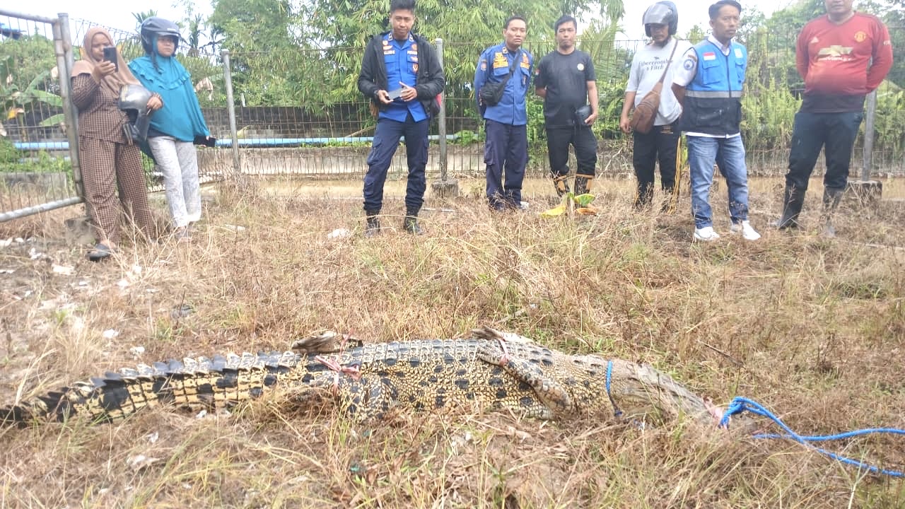 “Kita sudah berupaya melakuka n tindakan awal, hasil koordinasi dilakukanlah pemancingan. Pukul 06.30 diperkirakan reptil ini memakan pancing yang dilakukan oleh pak Simon dan rekan-rekan yang ada di penangkaran buaya, dibantu teman-teman Satpol PP dan Pemadam Kebakaran,” ujar Sofyan.