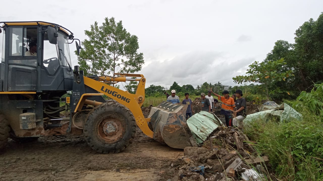 Sejumlah alat berat milik PT SHEBA yang diturunkan jalan kali ini seperti Loader dan truk. Yang terlihat bekerja sejak pagi di sepanjang jalan utama perumahan.