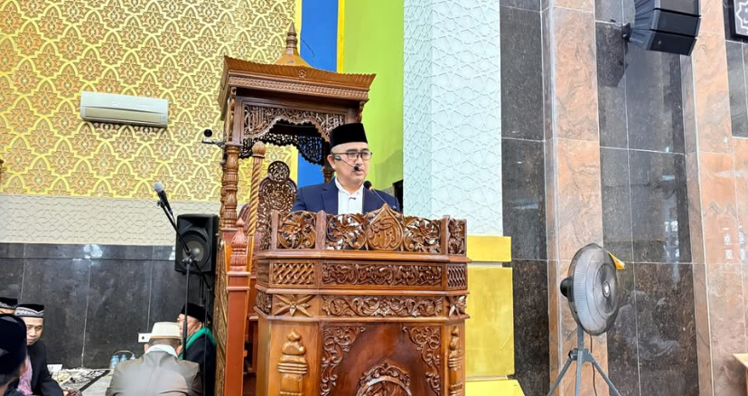 Tarakan – Wali Kota Tarakan, dr. H. Khairul, M.Kes., sebagai khatib pada pelaksanaan Sholat Hari Raya Idul Fitri 1 Syawal 1447 Hijriah yang berlangsung di Masjid Baitul Izzah Islamic Center, Sabtu (21/3/2026).